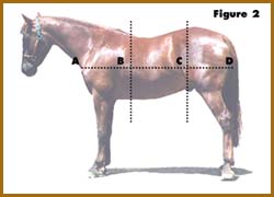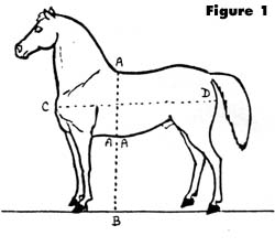 It is interesting to measure the drawing of Justin Morgan against the U.S. Calvary purchasing guidelines which call for the shoulder, hip and head length to be approximately equal. Figure 3, D-E, F-G and A-H shows that the Morgan type fits these specifications almost perfectly. Equine artists use two rules when drawing horses. One is that the ideal horse is the same in depth of body (fig. 1, A-AA) as from the body to the ground (fig. 1,AA-B). The other is that the horse should be about the same length from the middle of the wither to the poll (fig 3, B-A) as from the middle of the wither to the base of the tail (fig 3 B-C). The Morgan fulfills both the Calvary and artist's requirements, making it an equally useful and beautiful animal. The proportions of the Morgan horse are remarkably similar to those of horses that are performing successfully at the highest levels of international sport competition. This is no accident, only proof that form follows function.